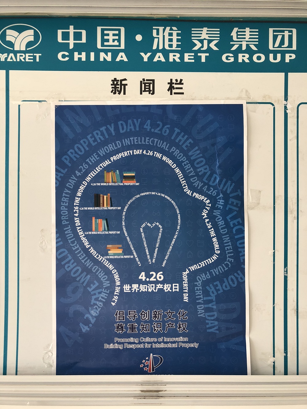 近日,在第18個世界知識產權日到來之際,雅泰集團通過發(fā)放相關宣傳資料、懸掛橫幅、張貼海報等方式順利開展知識產權宣傳系列活動,旨在加強知識產權宣傳普及,優(yōu)化知識產權保護氛圍,推進企業(yè)技術創(chuàng)新。作為一家專注于自主研發(fā)、生產、銷售的現代化企業(yè),集團不斷開發(fā)適應市場和客戶的新產品,重視知識產權保護,并以“倡導創(chuàng)新文化,尊重知識產權”為主題,結合企業(yè)發(fā)展現狀,多次組織員工參加知識產權保護宣傳培訓活動,鼓勵員工在知法守法的前提下大力創(chuàng)新,提高自主開發(fā)能力,助推企業(yè)加速發(fā)展。