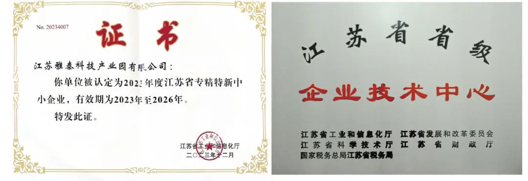江蘇雅泰喜獲“江蘇省專精特新”、“江蘇省企業(yè)技術中心”兩項省級資質榮譽,標志著江蘇雅泰科學管理體系、技術研發(fā)能力邁上了更高的臺階!