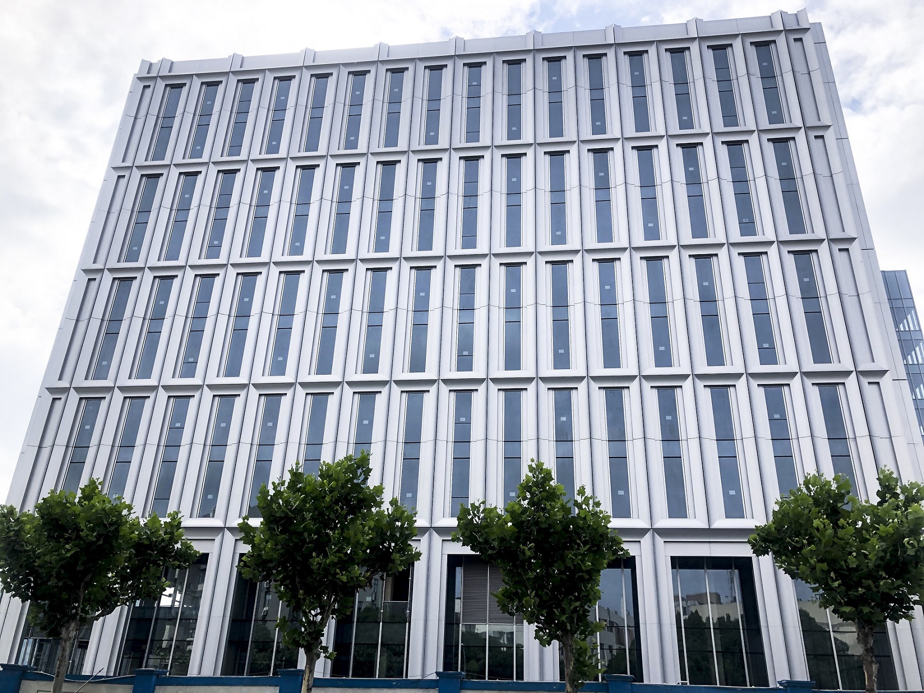該項目是單元體幕墻結(jié)構(gòu),現(xiàn)場骨架與鋁板融為一體,鋁板組裝嚴(yán)絲合縫,單個單元體使用連接片160余個,其中60個需要機(jī)加工,以滿足三邊連接型材,個體螺絲使用量約1200顆。整體組裝后尺寸達(dá)到3000*5100mm。