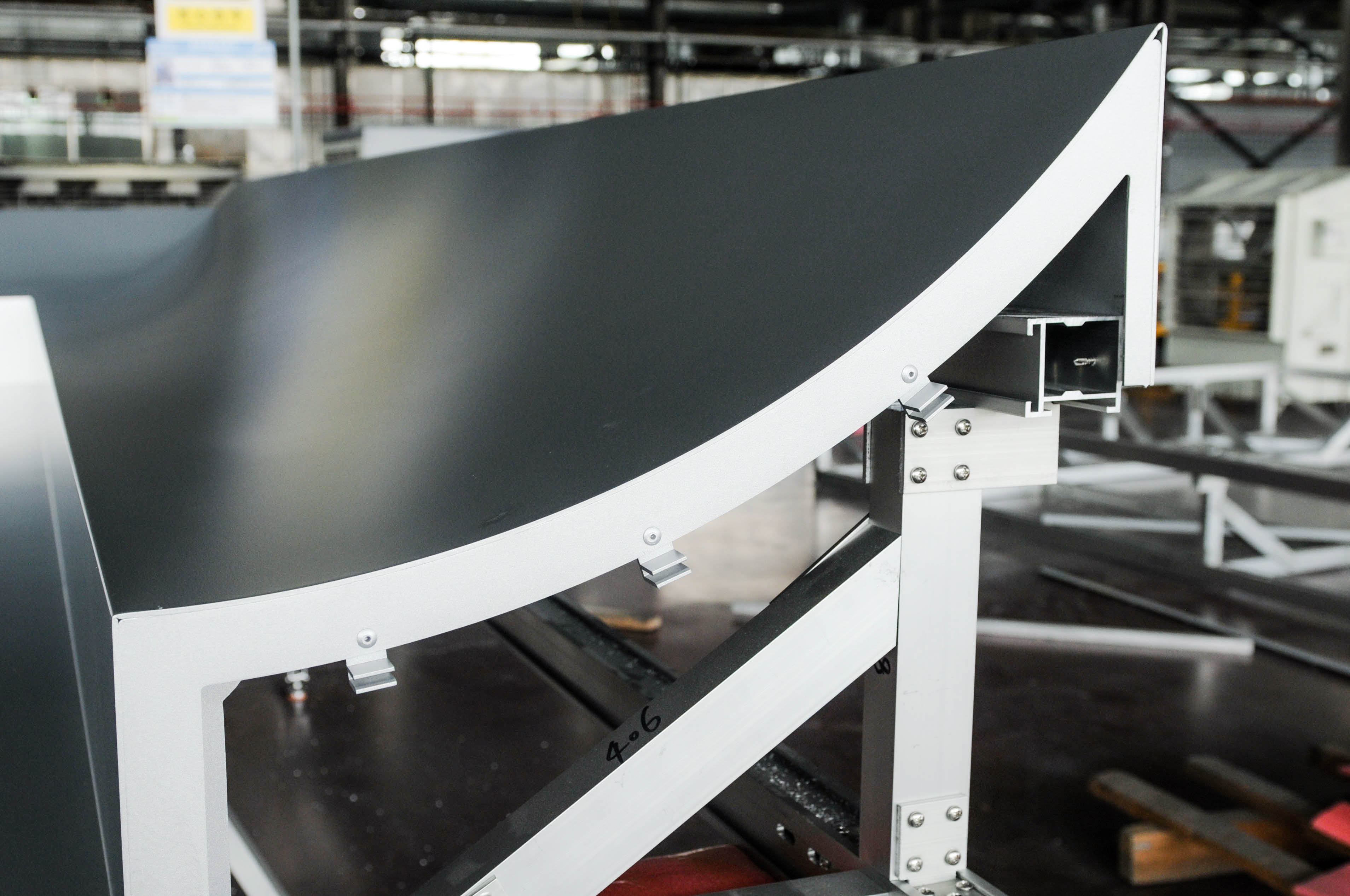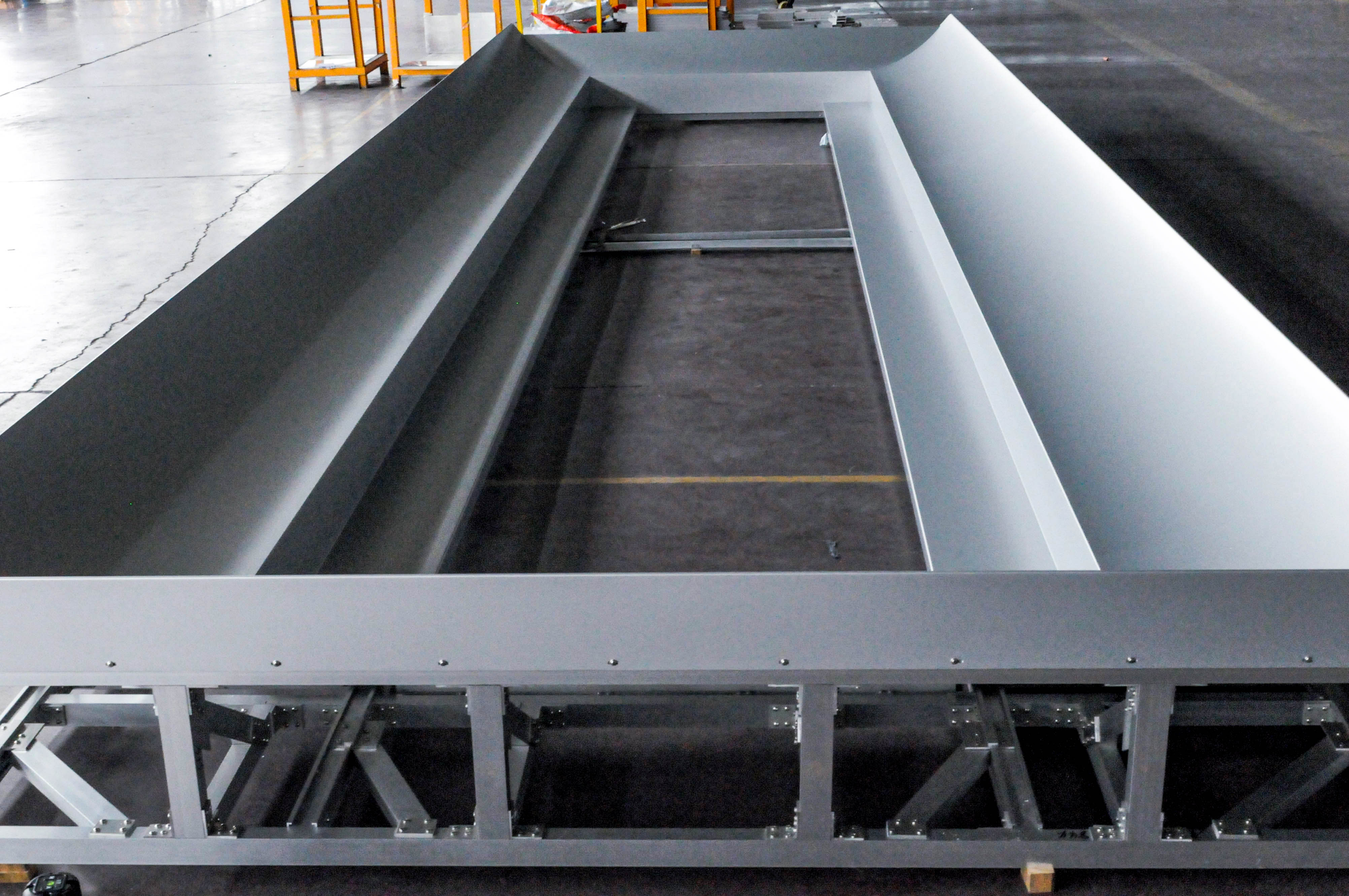 由于該項目幕墻板形狀特殊、工藝要求極高,給我們的加工和運(yùn)輸都帶來了極大的考驗。為了保障產(chǎn)品質(zhì)量最后一關(guān),公司使用專用運(yùn)輸支架,該運(yùn)輸支架既環(huán)保又能保證產(chǎn)品不受任何磨損到達(dá)項目工地,充分展示了公司產(chǎn)品定制化、個性化的特點。