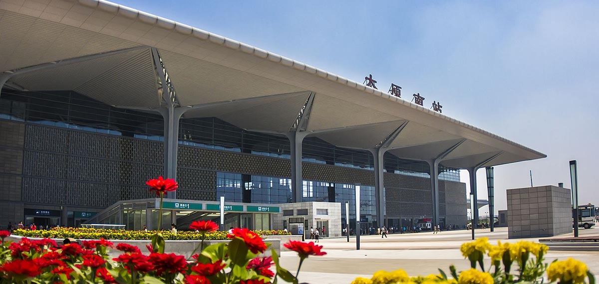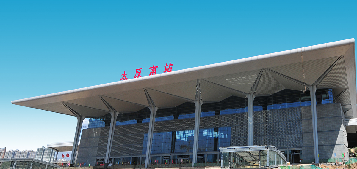 太原南站位于太原市小店區(qū)北營(yíng),東臨東山過境高速公路,西接太原武宿國(guó)際機(jī)場(chǎng),南依南環(huán)高速公路,北靠長(zhǎng)風(fēng)大街,地處國(guó)家級(jí)太原高新技術(shù)開發(fā)區(qū)、太原經(jīng)濟(jì)技術(shù)開發(fā)區(qū)及武宿物流區(qū)等三大園區(qū)交叉輻射的核心地段。占地面積45公頃,站房主體結(jié)構(gòu)為地上兩層地下一層,建筑面積約20.06萬平方米,其中客運(yùn)站房建筑面積5.5萬平方米以上,車場(chǎng)規(guī)模為10臺(tái)22線,設(shè)計(jì)年發(fā)送旅客量可達(dá)4000萬人次以上。工程投資估算總額約30億元以上,由鐵道部和山西省共同出資建設(shè),是山西省內(nèi)第一座高標(biāo)準(zhǔn)現(xiàn)代化的大型鐵路客運(yùn)站,為太原市標(biāo)志性建筑之一。